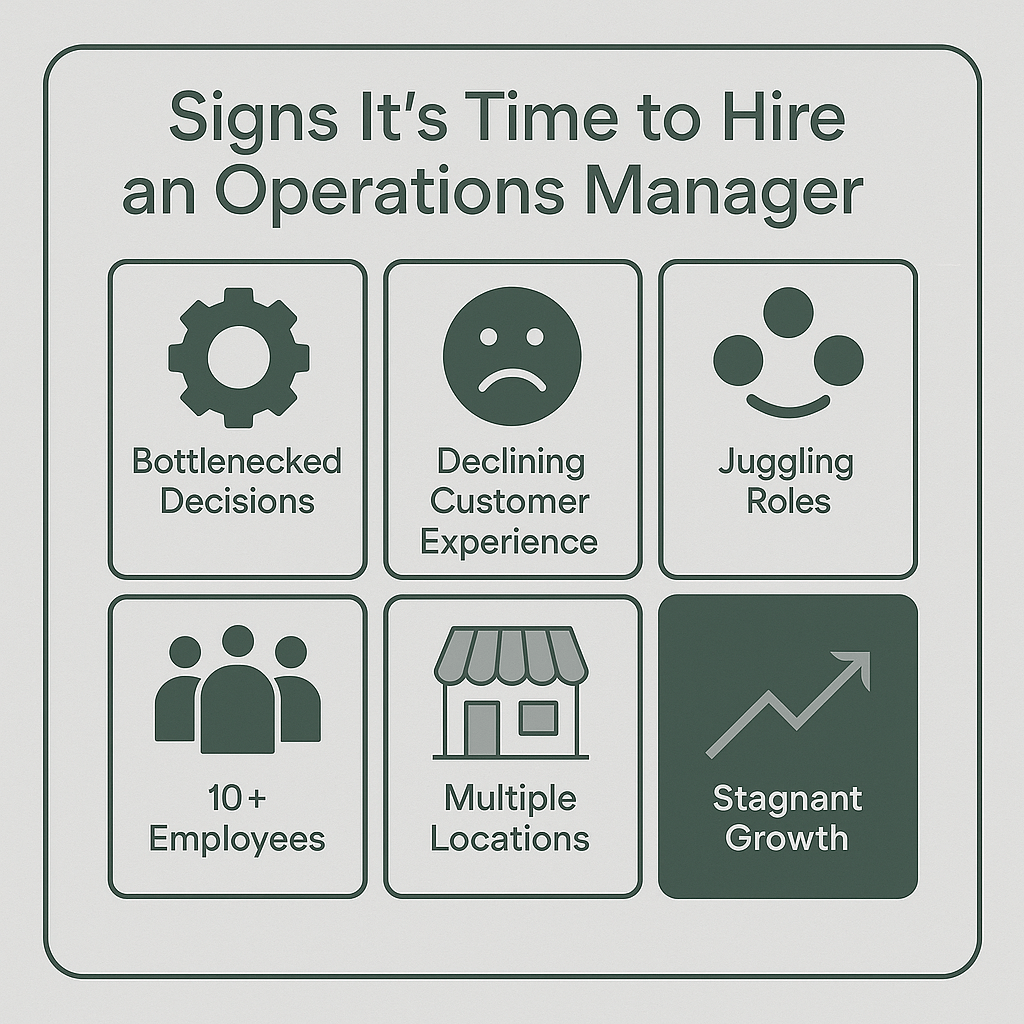 As your business grows, so do the demands on your time. At some point, you’ll face a key decision: keep wearing all the hats, or bring in someone dedicated to running the day-to-day. An Operations Manager can free you to focus on strategy, customers, and growth.